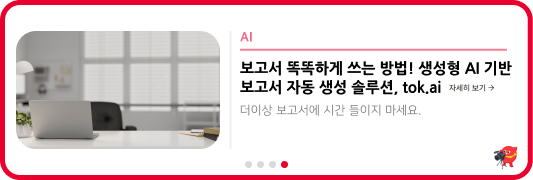 직장인들이 평균 업무 시간 중 1/3을 보고서 작성에 할애하는 현실에서, tok.ai는 보고서 작성의 부담을 크게 줄여주며 업무 효율성을 극대화할 수 있게 돕습니다. 기존 생성형 AI 솔루션들이 제공하는 기본적인 텍스트와 이미지 배치를 넘어, 실제 기업 데이터를 활용하여 복잡한 분석과 전문적인 보고서까지 쉽게 제작할 수 있습니다. Tok.ai의 더 자세한 특징과, 보고서 작성에 있어서 혁신을 경험하고 싶다면 아래 배너를 클릭해 주세요✍🏻