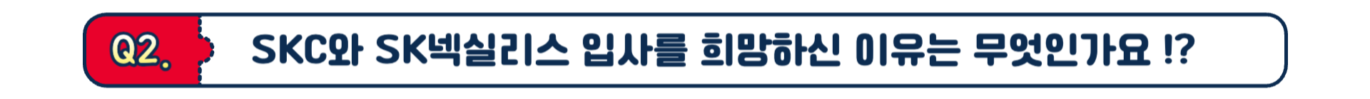 여러분 또한 SKC 취업 준비, 어떻게 어디서부터 시작해야 할지 막막하지 않으신가요? 👀 가장 최근의 생생한 입사 후기를 듣고 싶거나 취업에 대한 희망을 얻고 싶으셨다구요?🍀 그렇다면, 꼭 주목해 주세요! 오늘 가장 최근에 소위 취뽀(취업 뽀개기)에 성공하신, SKC와 SK넥실리스 신입사원 두 분을 인터뷰이로 모셨습니다!😊