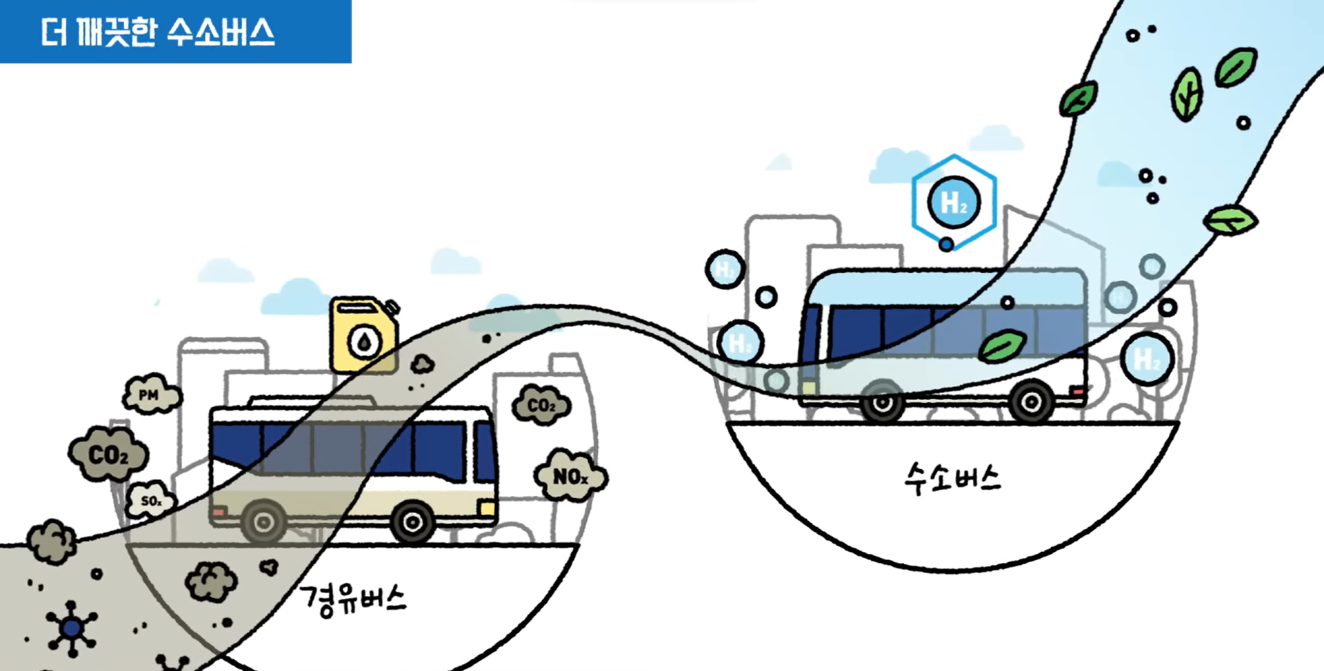 이희원 매니저: 네, 수소차랑 전기차를 구분할 때는, 구동되는 방식에 따라 나누면 좋을 것 같습니다. 수소차는 영어로 이제 Fuel Cell Electric Vehicle, 요약해서 'FCEV'라고 부릅니다. 즉, 수소차 또한 전기차의 일종임을 알 수 있죠. 구동 방식이 전기를 통해서라는 점은 동일합니다.