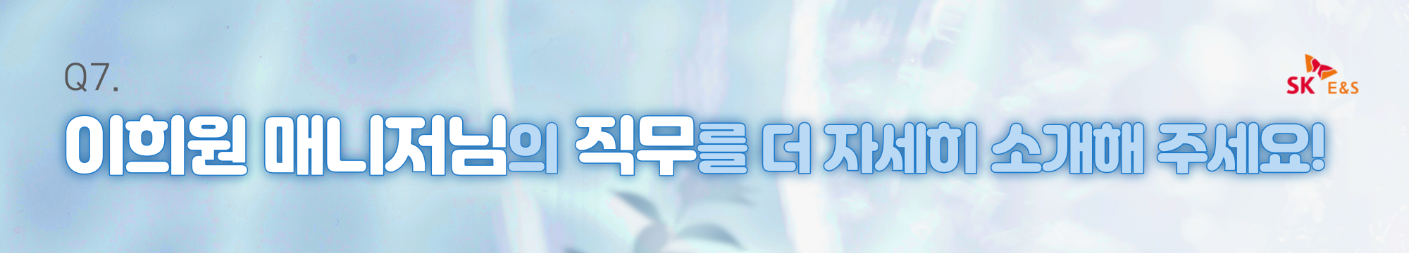 이희원 매니저: 네, 안녕하세요. 저는 SK E&S 글로벌 수소 사업 지원팀에서 근무하고 있는 이희원 매니저입니다.