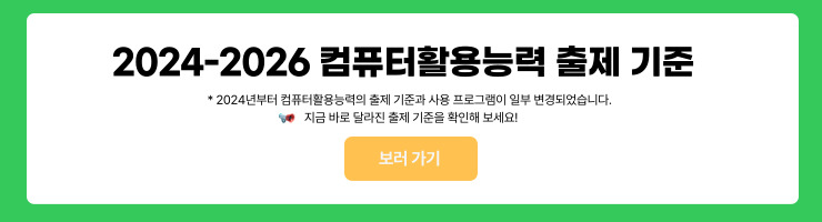 그리고 여러분, 2024년부터 컴퓨터활용능력의 출제 기준과 사용 프로그램이 변경되었다는 사실 알고 계신 가요? 기술 발달과 산업 현장의 수요가 변화함에 따라 활용 프로그램의 버전을 업그레이드하여 출제 기준에 적용하고 있다고 합니다!