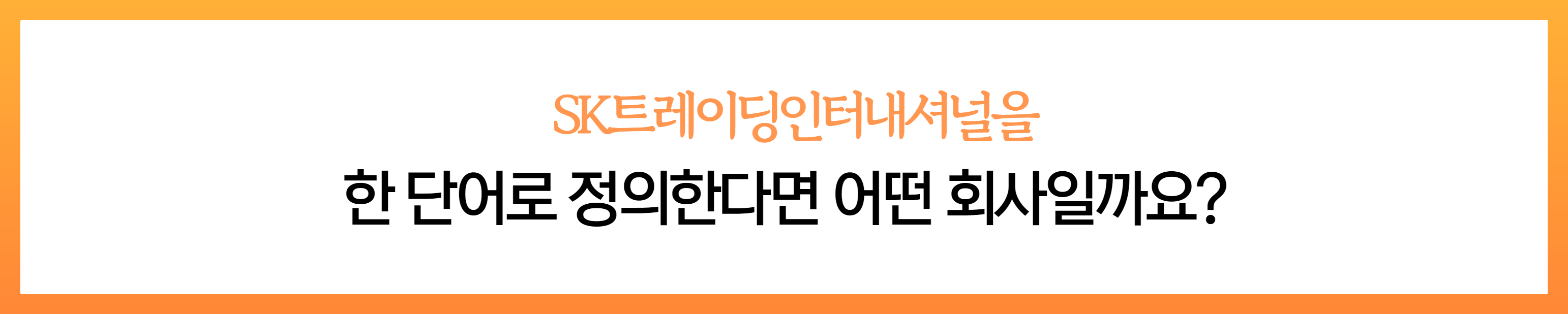 SK트레이딩인터내셔널은 원유와 석유화학 제품을 수입하고, 수출하는 트레이딩 회사입니다. 원유를 수출하고 트레이딩하는 과정에서 전 세계적으로 원유과 석유화학 제품을 다루기 때문에 '글로벌 트레이딩 회사'라고 정의하였습니다.