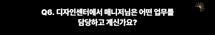 최장혁 매니저님🙎♂️: 본인의 아이디어를 시각화할 수 있는 3D디자인 프로그램을 다루는 역량이 필요하며, 개인적으로 강조하고 싶은 점은 책임감인 것 같습니다.
