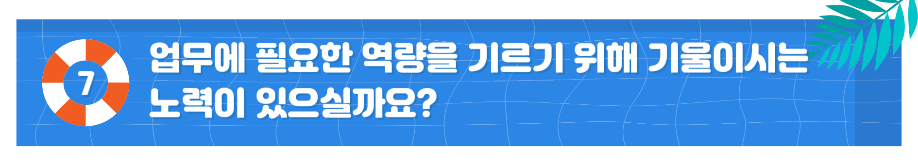 과거를 돌아보고 미래를 추정하는 업무다 보니 자기만의 시나리오를 분석하고 미래 시나리오를 세워볼 수 있는 역량이 중요한 거 같아요. 분석력에 대해 신경을 많이 쓰고 있습니다. 또, 데이터를 활용하는 업무다 보니 오차에 따라 값의 차이가 크게 나기도 합니다. 잘못 분석되면 추정도 틀어질 수 있어 데이터를 잘못 분석하지 않도록 신경 쓰는 편입니다.