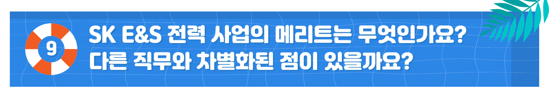 통합적으로 다양한 업무를 할 수 있는 직무라고 생각합니다. 발전소 운영뿐만 아니라 운영에 따른 수익을 관리하기 때문에 재무적 측면과 전략적 측면을 관리하며 통합적으로 프로젝트를 운영할 수 있는 매력적인 직무입니다. 뿐만 아니라 회사 내의 이동이 열려있는 편이라 LNG 부문, 수소 부문 등 다양하게 근무해 볼 수 있다는 점이 SK E&S가 가진 메리트라고 생각합니다.