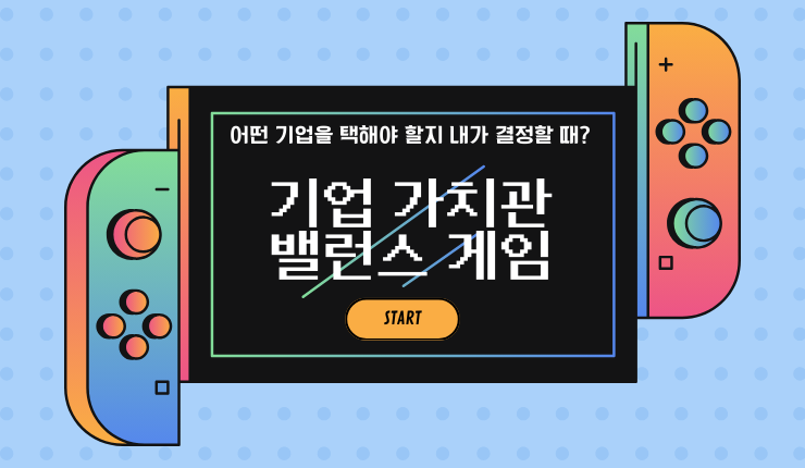 어떤 기업이 나에게 맞을지, 어떤 기업을 선택하는 것이 좋을지 고민이 많을 취준생분들을 위해 기업 선택 가치관에 관한 밸런스 게임을 준비해 보았습니다.