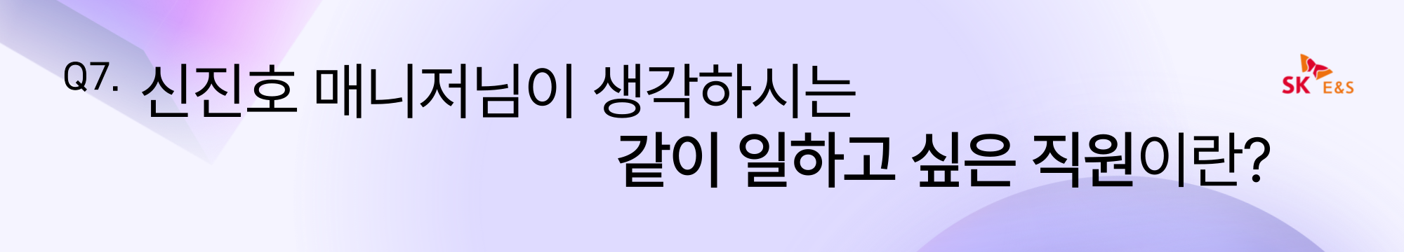 이상으로 SK E&S Talent Management팀 신진호 매니저님과의 인터뷰 소개를 마무리하겠습니다. 인터뷰를 하면서, ‘나는 어떤 사람으로 보일까’가 아닌, ‘나는 어떤 사람으로 보이고 싶은가?’에 대한 생각이 따라왔던 것 같습니다. 타인에 대한 관심, 나아가 저 자신에 대한 관심이 더 많이 필요한 시점이라는 생각이 들었던 것 같아요.