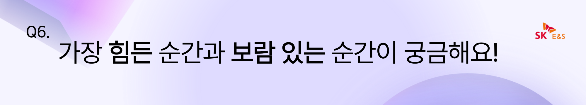 임원분들이 공통적으로 선호했던 인재상을 보면, ‘열려있는’ 사람인 경우가 많습니다. SK E&S의 기업 특성상, 기존에 진행되었던 사업 외에도 신사업을 직접 기획해야 하는 경우가 많기 때문에, 주도적으로 무언가를 찾아야 하고, 나서서 일을 해야 하는 업무가 많습니다. 이런 상황에 놓였을 때 열린 자세로, 적극적으로 임하며 자기 완결적으로 업무를 처리할 수 있는 사람을 원하는 것 같습니다.