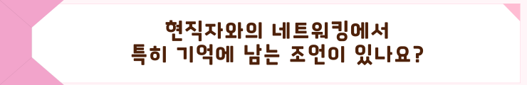 유시은 학생:저는 두 분과 멘토링을 했는데요. 칼취업을 하신 멘토 분과 중고신입으로 입사를 하신 멘토분의 이야기를 함께 들을 수 있었습니다. 하이닉스 입사를 위해 어떤 경험을 했는지, 자소서 혹은 면접에서 본인의 강점을 어떻게 정리하고 어필했는지 등의 꿀팁을 알려주셔서 더욱 유익한 시간이었습니다.