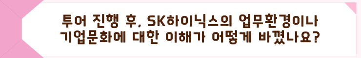 SK하이닉스가 최근에 Dram의 한계를 돌파하는 괄목한 성과를 내며 “’원팀 정신’ 덕분”이라는 인터뷰를 한 기사를 봤는데, 멘토님이 말씀하신 이야기에서도 부서를 막론한 ‘원팀 정신’이 느껴졌고 SK하이닉스가 최고의 반도체 기업으로 성장해 나가는 근간을 엿볼 수 있었습니다. 업무 환경이나 기업 문화에서 SK하이닉스가 정말 따스한 회사라는 생각이 들었습니다.