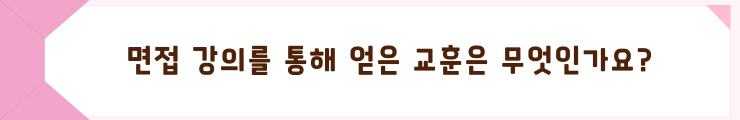 유시은 학생:유튜브를 운영하시는 '면접왕 이형'님께서 면접강의를 해주셨는데 특히 취업을 위해 자소서나 면접을 준비하기 위해 본인의 경험을 정리할 때, 3C4P를 사용하는 방법에 대해 설명해 주셨습니다. 나를 뽑아야 하는 이유, 즉 '본인만의 필살기를 만들어라!' 라는 말씀이 가장 기억에 남습니다.