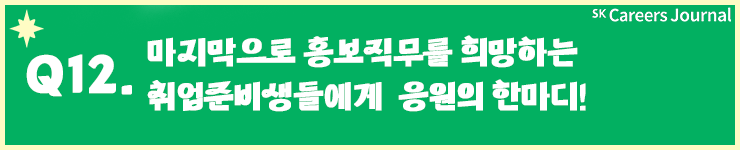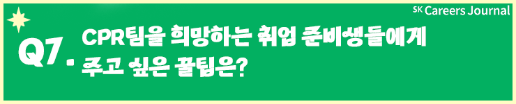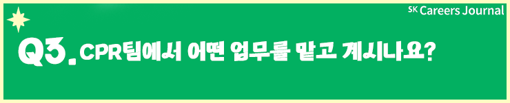 지금까지 고창휘PL님과 함께 SK머티리얼즈의 홍보팀에 대해 알아보았는데요. 현재 근무하고 계시는 CPR팀에 대해 이렇게 정리해 주시니 홍보팀 취업과 업무가 어떻게 이루어지는지 감이 오는 것 같지 않으신가요? 바쁘신 와중에도 시간 내서 답변 주신 고창휘PL님께 다시 한번 감사의 말씀을 드립니다.