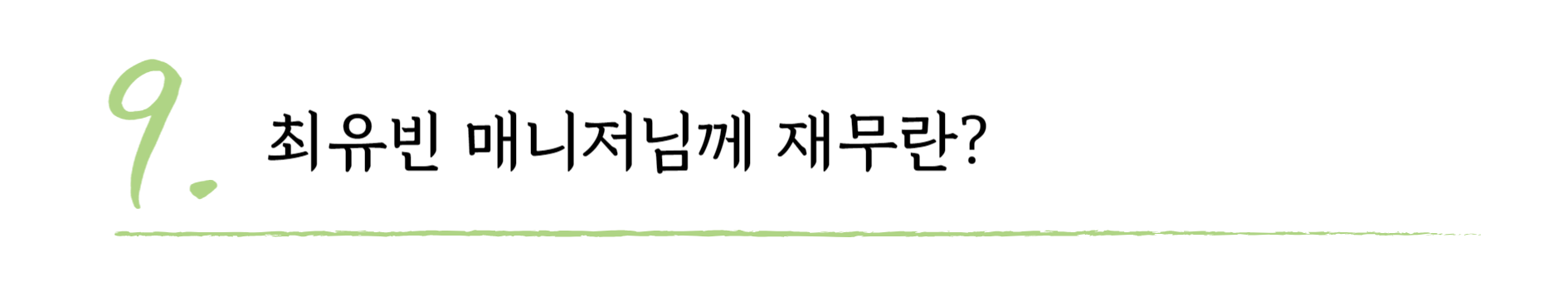 재무의 좋은 점은 숫자로 이야기할 수 있다는 것입니다. 숫자는 가치 판단이 들어가지 않은 명확한 사실이기 때문에, 논쟁의 여지가 있거나 말장난을 할 필요가 없습니다. 재무 업무를 하며 잘 검증된 숫자를 만들어냈을 때만의 뿌듯함이 있습니다.