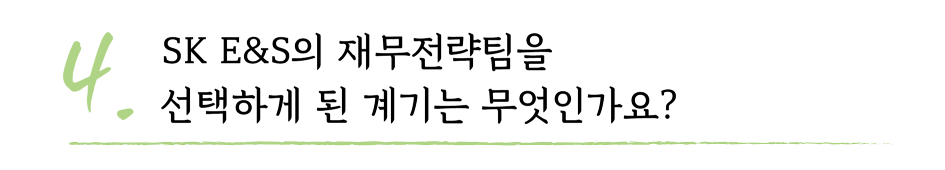 에너지 기업 SK E&S에도 안정적인 재무 운영을 책임지고 있는 곳이 있다고 합니다. 바로 SK E&S 재무전략팀💰입니다. 전략과 경험을 통해 안정적인 재무 운영을 이루고 계신 최유빈 매니저님과 함께 SK E&S의 재무 이야기를 나누어 보도록 하겠습니다.❤️