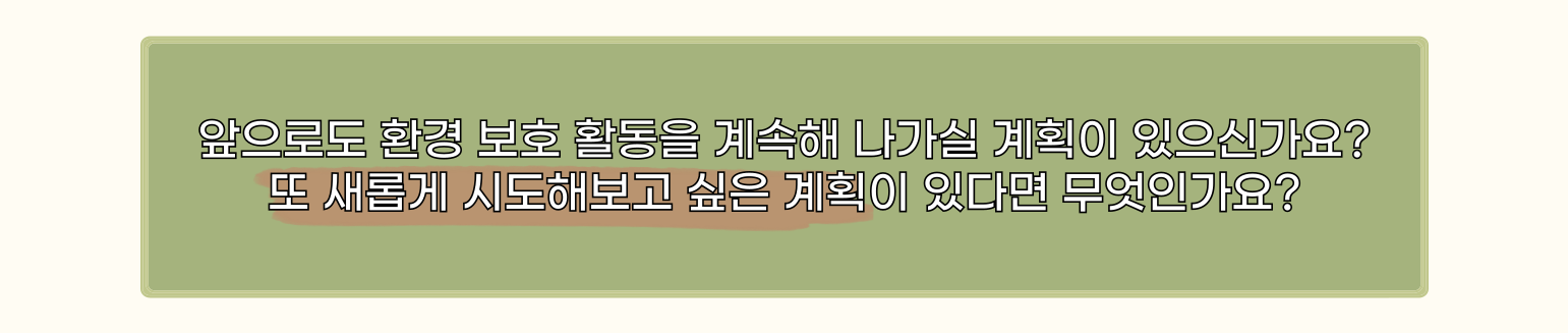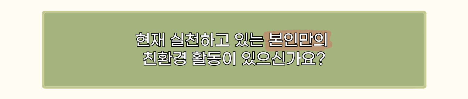 - ♻️: 저는 기후 변화, 대기 오염, 플라스틱 사용 등의 사회적 이슈가 뉴스에서 자주 다뤄지면서 자연스럽게 환경 문제에 대해 인식하게 되었던 것 같아요.