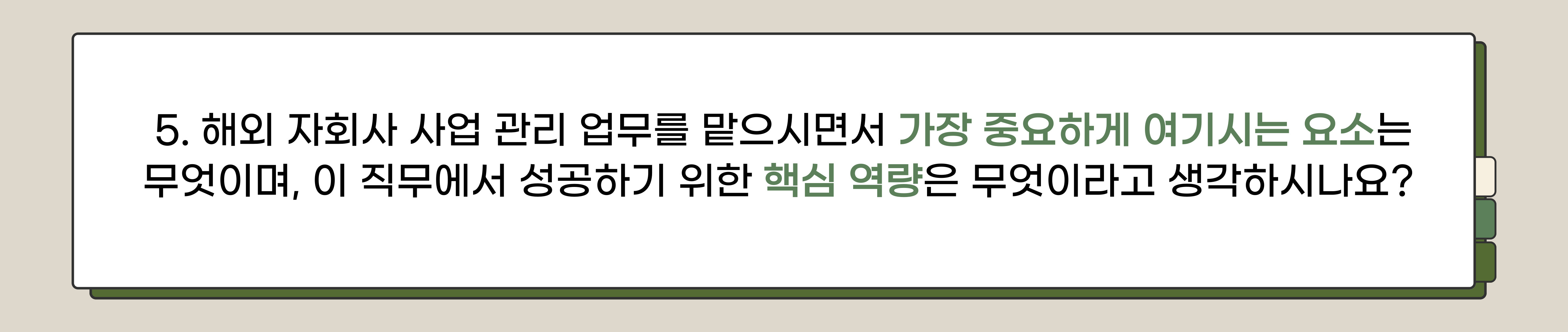 - 가장 중요한 요소는 커뮤니케이션이라고 생각합니다. 해외 자회사들은 문화와 언어가 다르기 때문에, 상호 이해와 배려를 통한 소통이 매우 중요합니다. 소통 방식에 따라 결과가 크게 달라질 수 있기 때문에, 이 직무를 수행할 때는 배려심과 소통 역량이 필수적이라고 생각합니다. 또 회사 간 이해관계가 상충하거나 의견 차이가 생길 수 있기 때문에, 갈등을 원만하게 해결할 수 있는 능력도 중요합니다. 커뮤니케이션이 원활하지 않으면 서로 오해가 발생할 수밖에 없다고 생각합니다. 따라서 상대방의 문화를 이해하고, 그에 맞춰 소통할 수 있는 능력이 매우 필요하다고 할 수 있습니다.