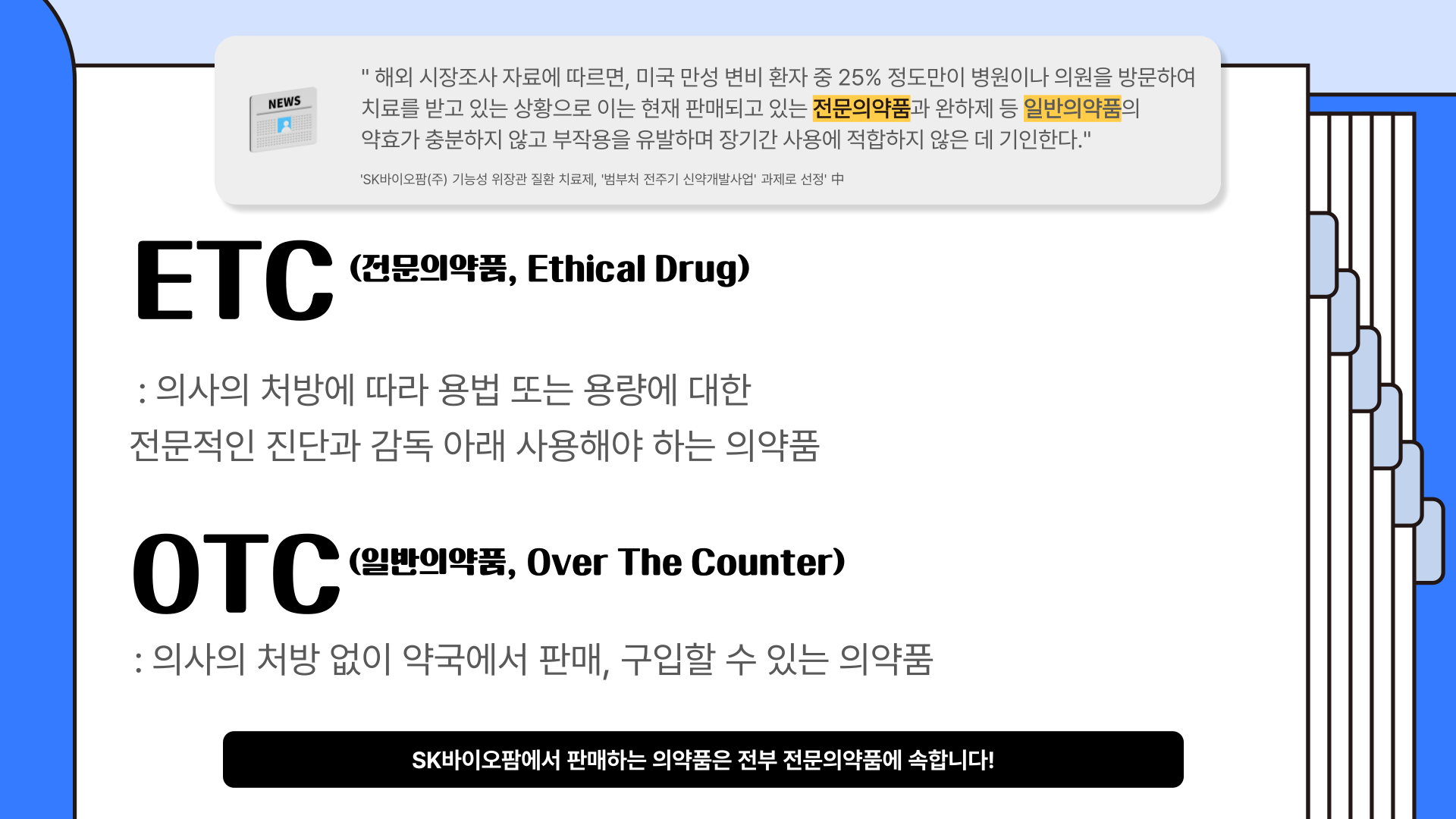 전문의약품(ETC, Ethical drug)은 의사의 진단과 지시에 따라서만 사용할 수 있는 의약품입니다.