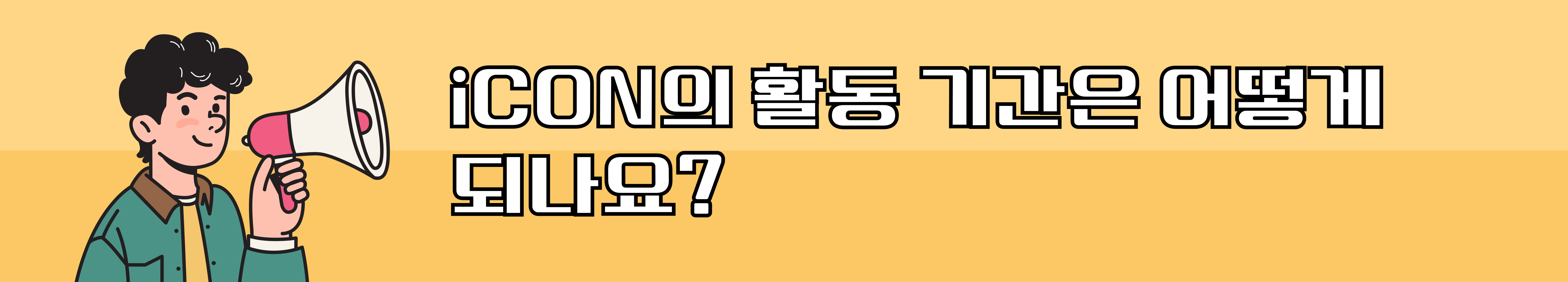 iCON의 활동 기간은 일반적으로 2년으로 설정되어 있습니다. 1년 동안 활동한 후 새로운 구성원으로 교체하는 것보다는, 한 번 경험한 후 두 번째 해에는 더 나은 소통을 이끌어낼 수 있다고 판단해 2년으로 가이드를 드렸습니다. 물론, 임원의 재량에 따라 1년째 활동 중인 분들도 있을 수 있고, 기업의 규모나 필요에 따라서 1년 단위로 선발되기도 하지만, 대체로 2년에 한 번씩 새롭게 구성원을 뽑는 것이 일반적입니다. 이를 통해 기존 iCON들이 쌓은 경험을 활용하여 더 효과적인 소통 활동을 이어갈 수 있어요.