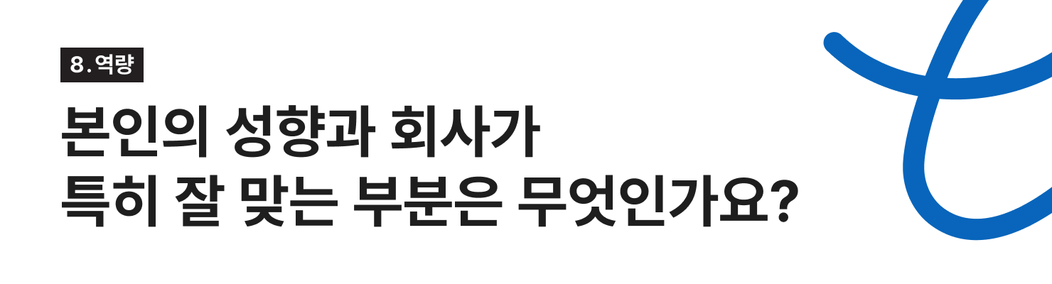 정유경PL님: 제가 회사에 지원할 당시에는, 기업문화가 완숙한 단계가 아니었기에 패기를 바탕으로, 도전적으로 일할 수 있는 환경이었습니다. 이러한 환경에서 제가 그간 쌓아온 경험과 역량이 잘 발휘될 거라는 믿음이 있었습니다. 더불어 지원 과정에서는 어떤 경험을 통해 어떤 역량을 쌓았는지, 그 역량이 저의 직무에서 어떠한 긍정적 영향을 줄지에 중점을 두었습니다.