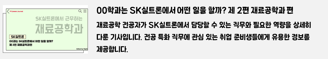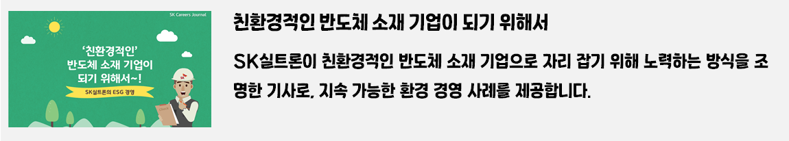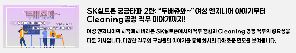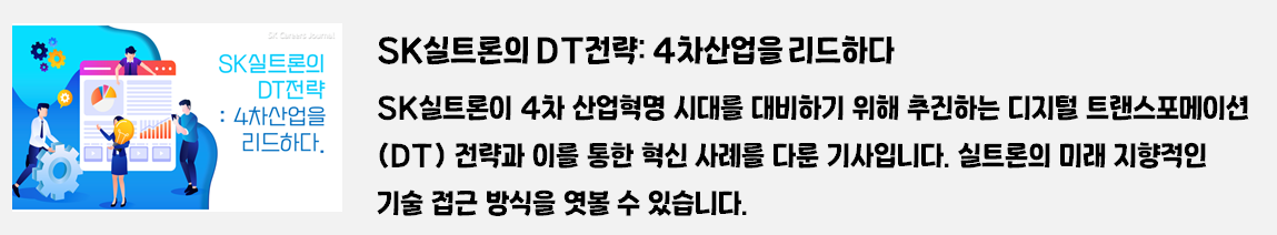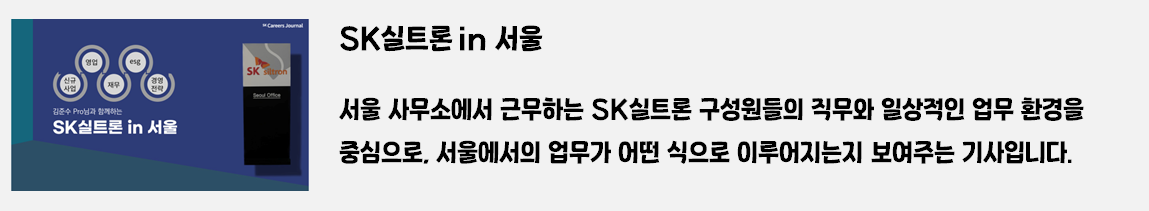 SK 커리어스 저널 독자 여러분, 안녕하세요! 저는 SK실트론의 생생한 이야기를 전하는 기자 이서빈입니다. 😊 오늘은 SK실트론과 관련된 2019년 이후의 모든 기사를 카테고리별로 정리해, 독자 여러분께 소개하는 특별한 시간을 준비했습니다.