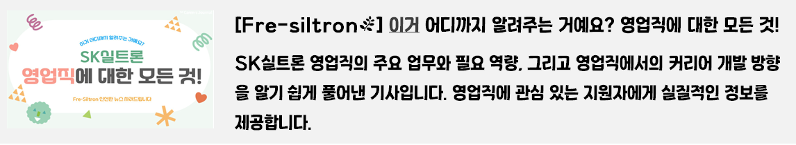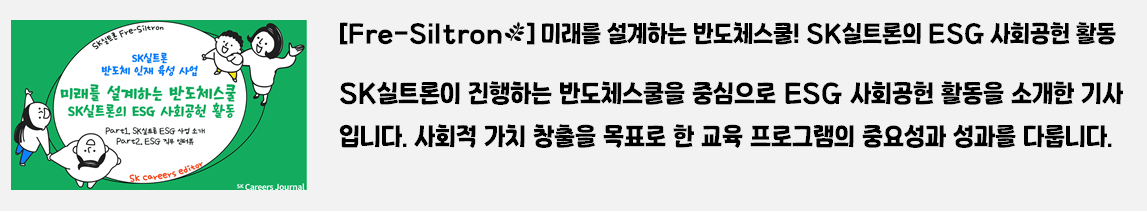 독자 여러분께서 SK실트론의 직무, 채용 정보, 기업 문화, 사회공헌 활동 등에 대해 더욱 깊이 이해하는 데 도움이 되었길 바랍니다. 앞으로도 SK실트론의 다양한 이야기와 알찬 정보를 전해드릴 예정이니 많은 관심과 응원 부탁드립니다.