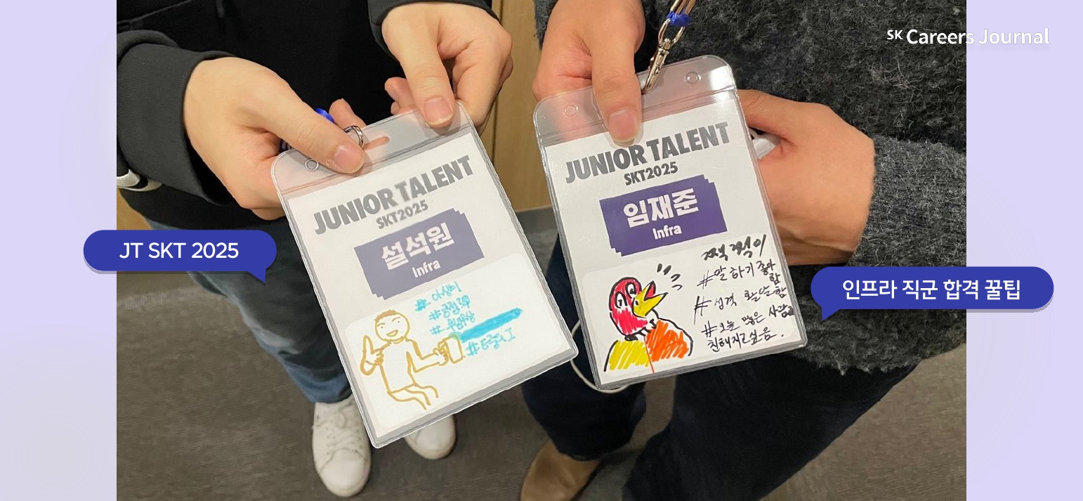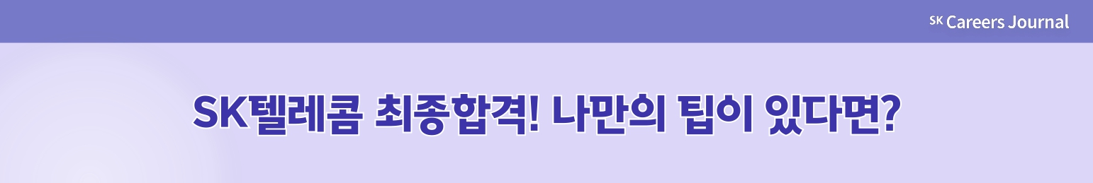 설석원:저는 SK텔레콤에 계신 학교 선배님들께 직접 조언을 구했습니다. 또, 유튜브에서 선배님들의 인터뷰 영상을 찾아보면서 회사의 분위기와 중요하게 여기는 가치들을 파악하려고도 했고요. 그리고 태도도 정말 중요하다고 생각해서 면접에서는 항상 밝고 긍정적인 모습을 보이기 위해 노력했습니다!