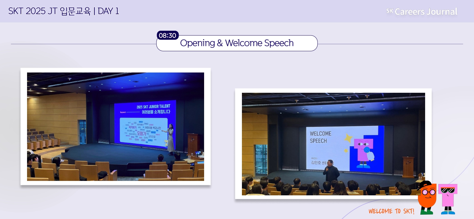 안녕하세요! SK텔레콤 취재기자 김양이 입니다. 지난 2024년 하반기, 치열한 경쟁률을 뚫고 선발된 SK텔레콤 2025 신입사원들! 🎉 그리고 마침내 1월, 새해와 함께 시작된 SKT Junior Talent(JT) 입문과정이 시작되었습니다. 신입사원의 첫 출근길을 맞이한 웰컴키트부터 알찬 교육 프로그램, 따뜻한 환영의 순간까지! 생생한 현장이 궁금하시다면, 지금 바로 함께하시죠!