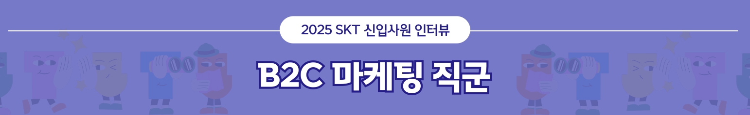 이영진: 저의 경우에는 마케팅 전공이 아니어서 처음에는 조금 어려움을 느꼈었는데요. 하지만 SK텔레콤을 오랜 기간 사용하면서 직접 경험하고, 느낀 점들을 면접에서 적극적으로 활용했던 것이 좋은 결과로 이어진 것 같습니다. 특히, UI·UX에 대한 개인적인 경험과 의견을 바탕으로, 고객의 입장에서 B2C 직군에서 어떤 전략이 필요한지를 강조했던 기억이 납니다!