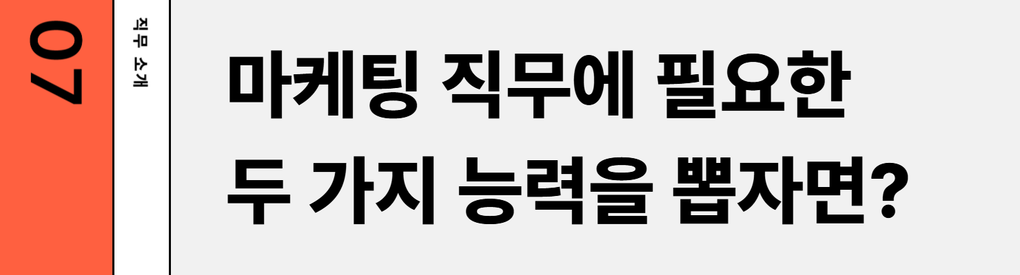신상원PL님: “다재다능”이라고 표현하고 싶습니다. 마케팅 직무는 특정 분야의 스페셜리스트라기(Specialist)보다 여러 방면에서 능력을 발휘해야 하는 제너럴리스트(Generalist)의 역할이 중요합니다. 특히, 마케팅 업무는 판매 촉진 활동에 그치지 않고, 다양한 업무를 포함하는데, 전략 수립부터 실행까지의 모든 과정에 참여해야 하는 경우가 많습니다. 따라서 특정 영역에 국한되지 않고 여러 분야를 동시에 다룰 수 있습니다. 이처럼 마케팅 직무는 여러 방향으로 접근해야 하는 일이 많기에 다양한 경험을 통해 폭넓은 시각을 기르고 다방면에서 균형 잡힌 역량을 키우기에 적합한 매력을 가지고 있습니다.