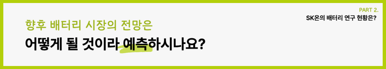 배터리 시장의 전망은 안전성, 고성능 그리고 가격 경쟁력을 갖춘 제품 개발에 달려있다고 봅니다. 이는 너무나 당연한 방향이지만, 동시에 우리가 반드시 나가야 할 길입니다. 특히 아직도 많은 소비자가 전기차가 고가 제품이라는 인식을 갖고 있습니다. 이런 인식을 바꾸기 위해서는 성능은 유지하면서도 가격을 낮출 수 있는 배터리 개발이 필수적입니다. 따라서 앞으로는 합리적인 가격의 배터리 개발이 전기차 시장을 더욱 활성화할 것으로 예상됩니다. 이렇게 활성화된 전기차 시장은 다시 배터리 시장의 확대로 이어질 가능성이 높습니다. 결과적으로 전기차와 배터리 산업 간에 상호 발전을 촉진하는 선순환 구조를 형성할 것으로 예측됩니다.