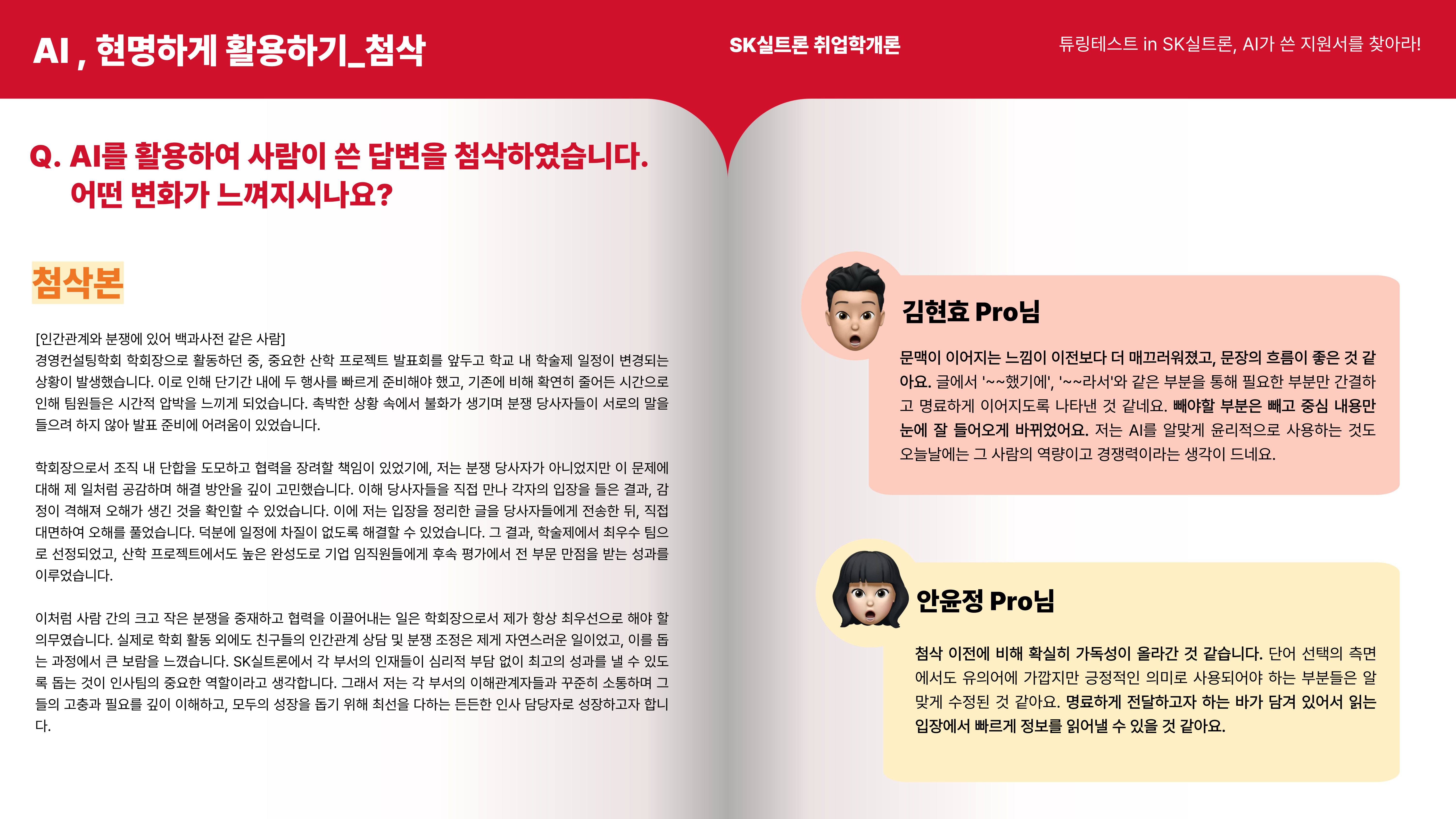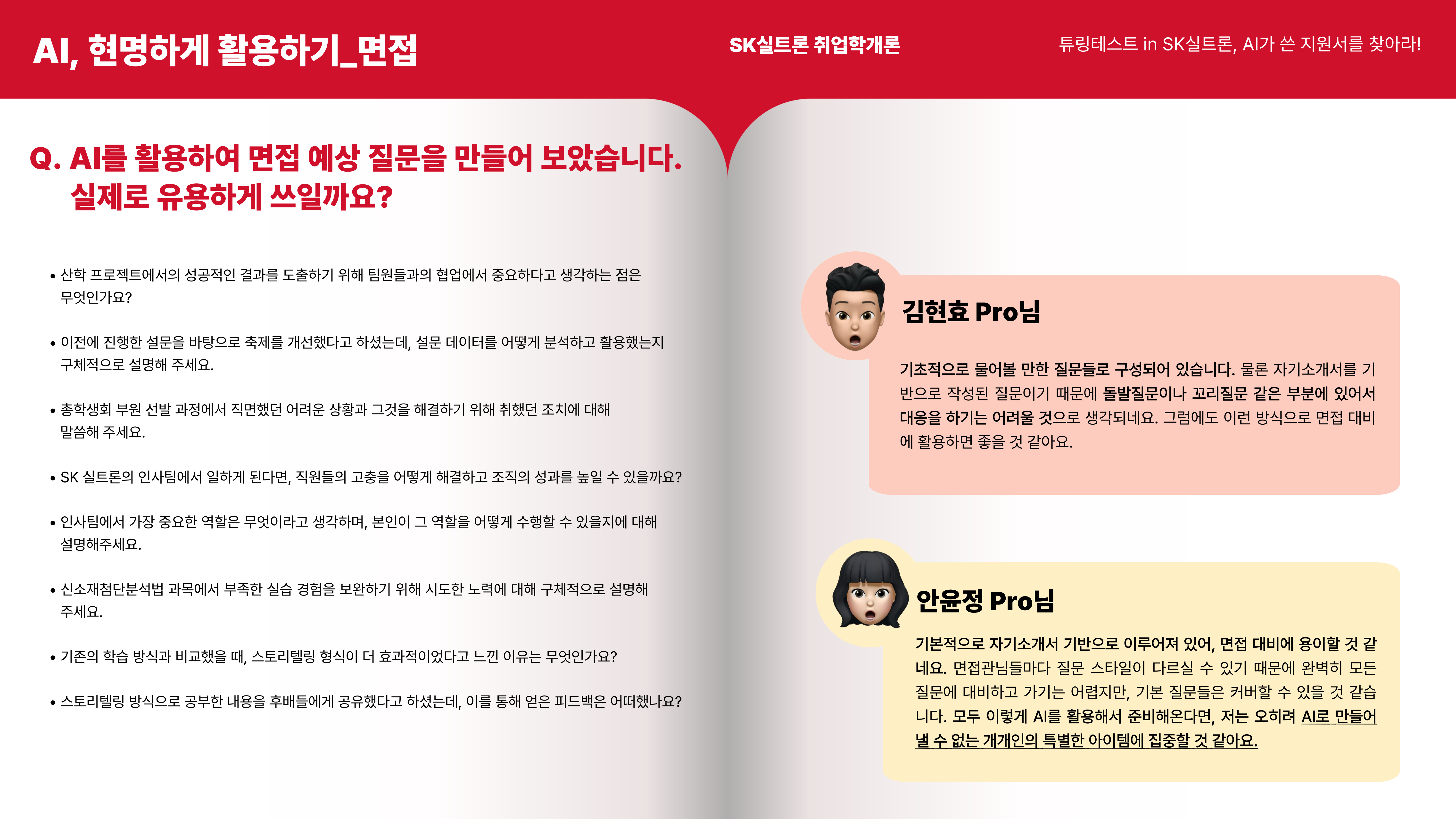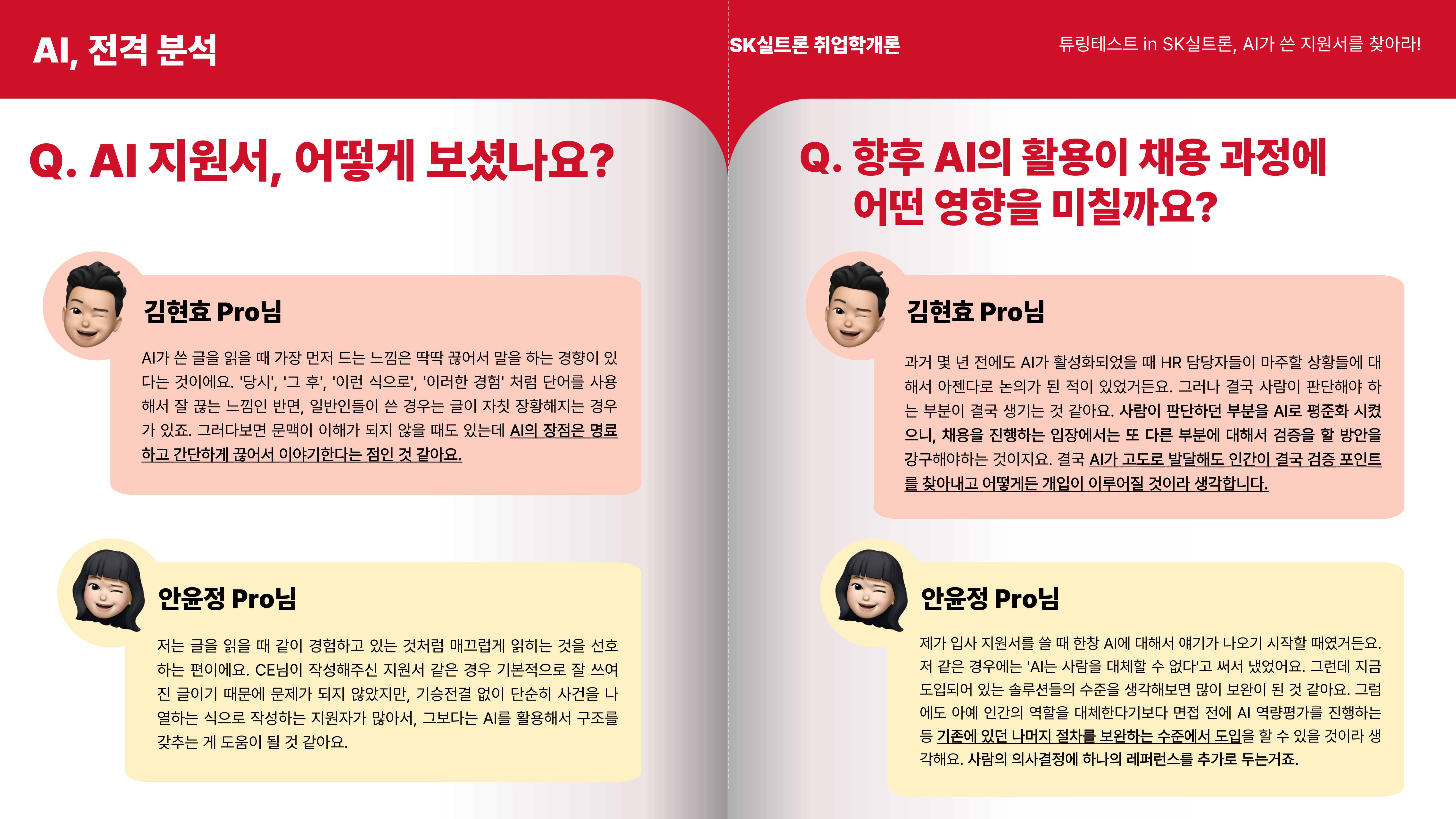 그렇다면 이제 제가 준비한 내용은 마무리되었고, AI 지원서를 살펴보신 Pro님들의 의견을 함께 알아보도록 하겠습니다!