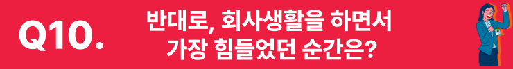 이태형 매니저 영어 공부를 미리 미리 해놓으라고 조언해주고 싶어요. 사실 제가 영어에 좀 약해요. 하지만 승진을 하려면 어학 성적이 필수라 영어 공부를 해야 되는데, 일하느라 생활하느라 바빠서 자꾸 미루게 되더라고요. 작년 말엔 팀장님께 꾸중을 듣기도 해서, 2년 전으로 되돌아간다면 미리 영어 실력을 길러놓으라고 말하고 싶습니다. ‘단어 100개당 100만 원이 늘어난다?’ 이런 식의 동기부여를 주면 잘하지 않을까요?