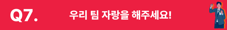 신수흔 매니저 우리 팀은 정말 이해심 많고 서로 도와주는 분위기가 있어요. 팀장님께서 책임감이 강하시고, 산업에 대한 이해도도 높으셔서 업무에 많은 도움을 주시고 계세요. 그리고 팀원들 한 명 한 명을 세심하게 챙겨주셔서 쉽지 않은데 잘 케어해주시고, 상담 요청도 빠짐없이 받아주세요.