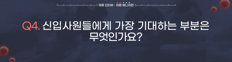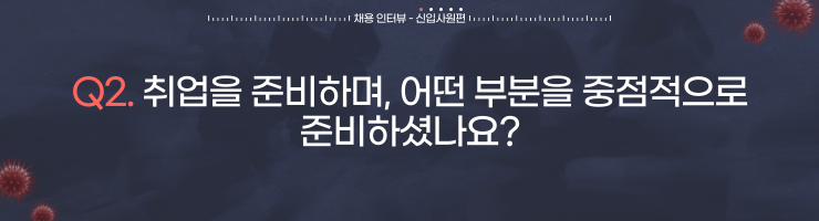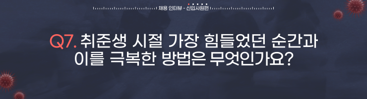 문동진 매니저🍀: 가장 에너지를 쏟은 부분은 저와 회사가 함께 성장할 수 있는 곳인지 알아보는 일이었습니다. 그래서 저는 회사에 대한 소개, 비전, 인재상 그리고 기사들을 많이 찾아보았습니다. 회사의 정보들을 찾다 보면 사내 문화와 분위기를 조금이나마 느낄 수 있고, 회사에서 중점적으로 추진하고 있는 프로젝트들이 어떤 것이 있는지 알 수 있습니다. 제가 회사에 기여할 수 있는 부분과 성장할 수 있는 부분을 찾을 수 있고, 자기소개서와 면접에서도 포커스를 맞춰야 하는 내용을 명확하게 어필할 수 있었습니다.
