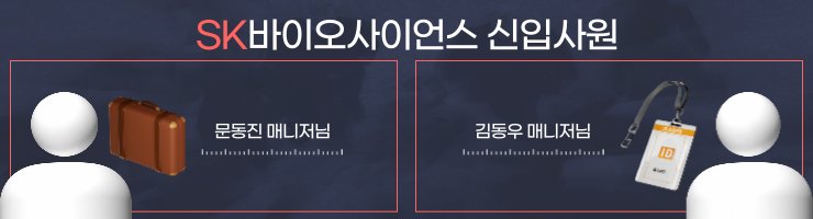 그럼 SK바이오사이언스의 서지현 채용 담당 매니저님과 김동우, 문동진 신입사원님을을 모셔보도록 하겠습니다. 현직자에게 직접 듣는 이야기, 본격적으로 들으러 가볼까요?🤩