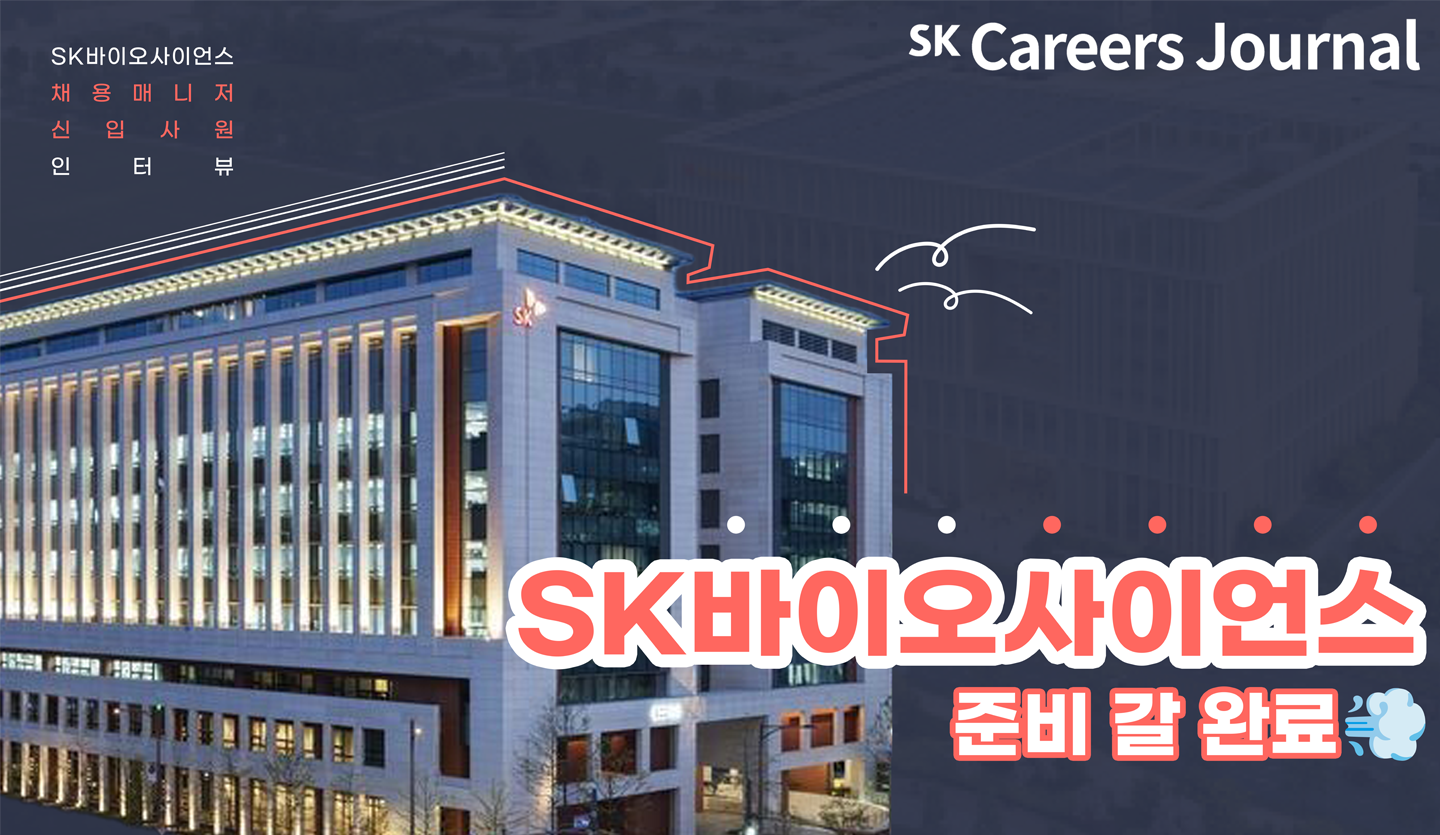 네! 이렇게 SK바이오사이언스의 서지현 채용 매니저님과 김동우, 문동진 신입사원님의 이야기를 들어보았는데요.☺️인터뷰를 정리하자면 SK바이오사이언스에서는 직무에 대한 경험과 회사에 대한 관심도가 평가에 중요한 척도가 될 것 같다고 느꼈습니다.