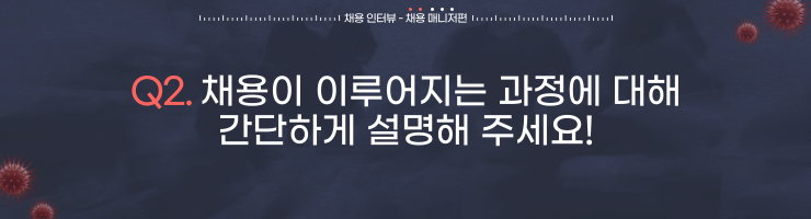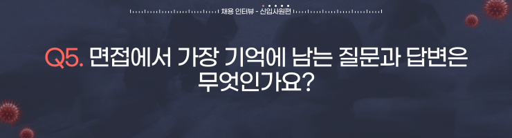 문동진 매니저🍀: 가장 기억에 남았던 질문은 “다른 해외 공장으로 기술 이전을 할 때마다 공정을 새로 정립해야 하는가?” 라는 질문입니다. 다만, 조금 방향성이 다른 부분은 제가 면접관 분들께 했던 질문이라는 점입니다. 지금 생각해보면 너무나 당연한 사실을 물어보는 질문이지만, 회사에 대해 많이 알아봤다는 점과 업무에 대해서 많이 생각해보고 있다는 점을 긍정적으로 봐주셨던 것 같습니다.