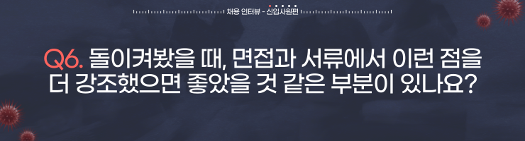 서지현 매니저님과 두 신입사원님들의 날카로우면서 따뜻한 조언과 충고가 많이 기억에 남았던 인터뷰였습니다.🔥또한 인터뷰에 응해 주신 현직자 분들 모두 인터뷰 내내 누구보다 취준생 여러분들을 생각하며 진중하게 말씀해 주심이 보였습니다. 특히나 마지막 질문에서는 현재 많은 생각과 도전을 하고 계실 취준생분들을 누구보다 깊게 공감하고, 조금이라도 힘이 되고자 현직자의 입장에서 응원의 이야기를 전해주심이 보였던 것 같습니다.🥹
