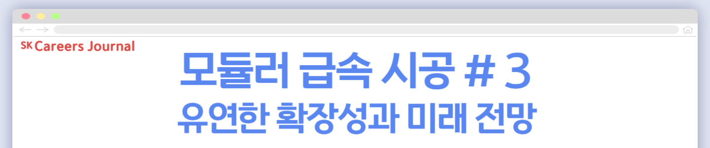 최근 클라이드 및 AI 산업의 발전과 5G 엣지 컴퓨팅 인프라 확산으로 인하여 데이터센터 수요가 급증하고 있습니다. 모듈러 급속 시공은 빠르게 변화하는 사회에 맞춰 분산형 데이터센터 구축에 적합한 시공 방식이고, 도심이나 원격지에도 빠르게 배치할 수 있어 친환경 데이터센터 구축의 핵심 솔루션으로 자리 잡을 가능성이 높습니다.
