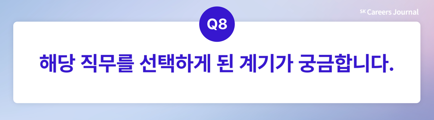 주용님: 커리어 초기부터 다양한 경험을 하면서, 주어진 상황을 열린 태도로 받아들이고, 그 안에서 몰입할 수 있는 일을 찾아왔습니다. 글로벌 네트워크 플랫폼을 연결하고 개선하는 일에 큰 흥미를 느꼈고, 자연스럽게 AI가 중요한 해답이라는 확신이 생겼죠. 명확한 목표보다는 경험 속에서 스스로 방향을 찾아온 결과, 지금의 직무로 이어졌다고 생각합니다.