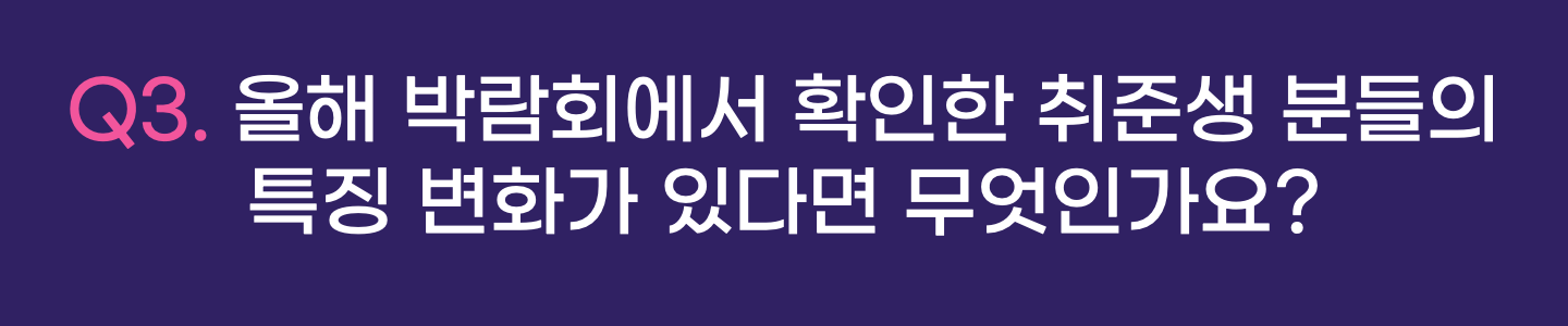 상담 담당자🔎: 올해 채용박람회에는 전보다 많은 구직자들이 오셨고, 정말 많은 궁금한 점을 물어보셨습니다! 지원자 분들의 열의도 대단해서, 1명당 30분 이상 면담을 진행하는 경우도 있었습니다!