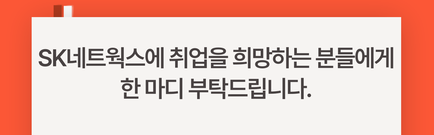 SK네트웍스는 개인이 회사에서 할 수 있는 역할이 다양하고 큰 편입니다. 개인에게도 기회가 많이 주어지기 때문에, 다양한 업무에 도전해볼 수 있습니다. 또한 개인의 커리어나 의사를 중점에 두고 일하는 문화입니다. 그렇기에 끊임없이 성장하고 도전하고 싶은 분들에게 좋은 선택이 될 것이라 생각합니다!