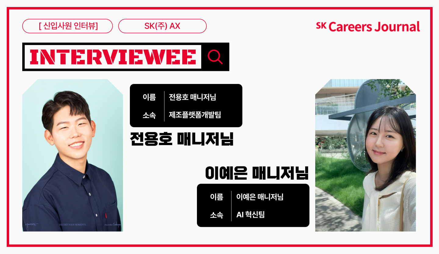 [신입사원 인터뷰], SK(주) AX [신입사원 인터뷰], 제조플랫폼개발팀의 전용호 매니저님과 AI 혁신팀의 이예은 매니저님과 함께합니다.