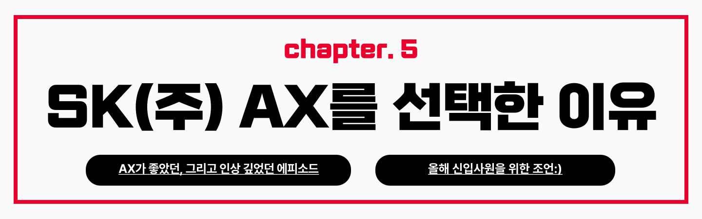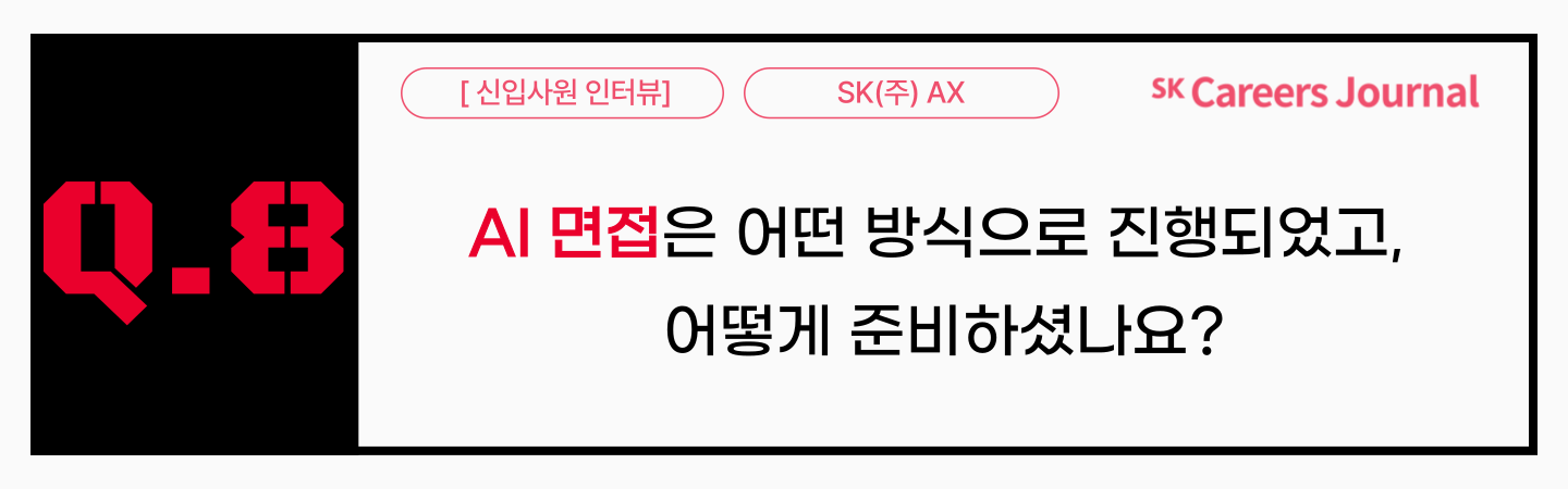 두 신입사원 분과의 인터뷰 내용이, 2025년도 채용을 준비하는 취업 준비생 여러분들께 많은 도움이 될 수 있으면 좋을 것 같은데요😊. 여러분의 취업 준비 여정의 끝에, SK(주) AX라는 아름다운 목적지가 함께하길 바라겠습니다. 많은 분들께 본 기사가 도움이 되었길 바라며, 더 풍부하고 다양한 주제와 함께 다음 기사로 찾아뵙겠습니다.