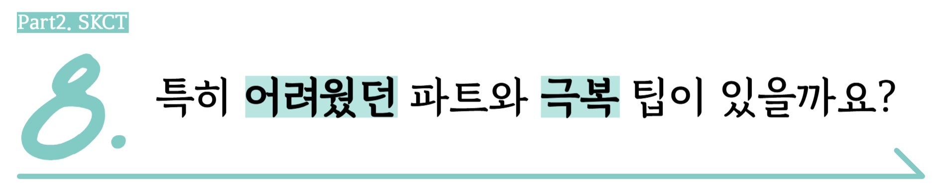 🎤이소민 매니저님: 1차 서류 합격 통보를 받고 나서부터 본격적으로 준비해야겠다고 생각했어요. 그때 취업준비생 커뮤니티에서 SKCT가 온라인으로 바뀌고, 인턴 전형이 생기면서 형식이나 문제 스타일이 많이 달라졌다는 얘기를 봤거든요. 그래서 기존 교재가 오히려 큰 도움이 안 될 수도 있겠다고 생각했고, 대신 암산 연습을 하거나 SKCT 후기를 찾아보면서 어떤 문제가 나올지 감을 잡으려 했던 것 같아요.
