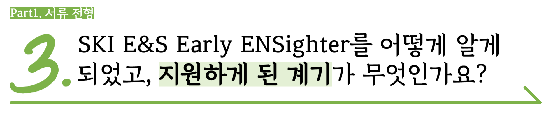 🎤최정인 매니저님: 저는 ‘왜 꼭 이 회사여야 하는지’, 또 그중에서도 ‘왜 이 직무여야 하는지’를 드러내는 데 집중했어요. 어떻게 E&S를 알게 됐고, 왜 이 회사에서 일하고 싶은지, 또 그중에서도 왜 수소 직무를 선택했는지를 진정성 있게 풀어내려고 노력했어요.