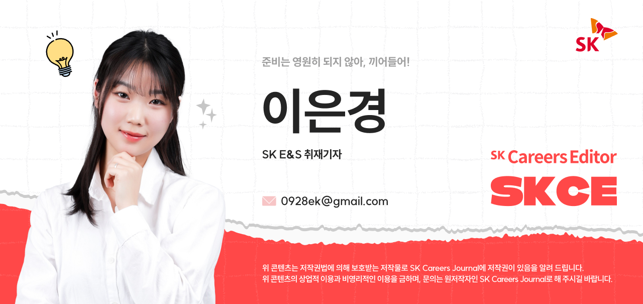 🎤이소민 매니저님:이 인턴십은 학교 경력개발센터 교내 홈페이지에서 처음 알게 됐어요. 지원한 이유는 두 가지였는데요. 첫째, 보통 인턴십은 한두 학기 휴학하고 업무에 전념해야 하지만, SKI E&S Early ENSighter는 학업과 병행할 수 있도록 구성되어 있어서 졸업을 미루지 않고도 경험할 수 있다는 점이 매력적이었어요. 둘째, E&S 관련 기사와 재무 지표를 분석해보니 미래 성장 가능성이 높다고 판단돼 지원을 결심하게 됐습니다.