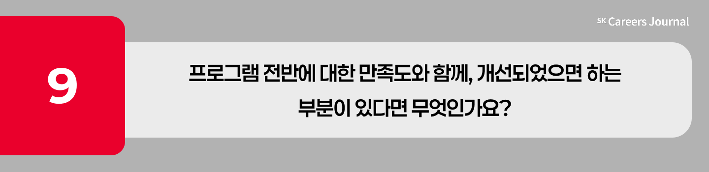 🎤이주형 교육생: 전체적으로 정말 만족하고 있습니다. 우선, 맛있는 구내식당과 10시까지 무료로 자율학습을 할 수 있는 장소 제공 덕분에 행복한 SKALA 생활을 보내고 있습니다. 그리고 현업과 밀접한 커리큘럼 덕분에 이론과 실습을 균형 있게 익힐 수 있다는 점이 정말 만족스러워 행복합니다!