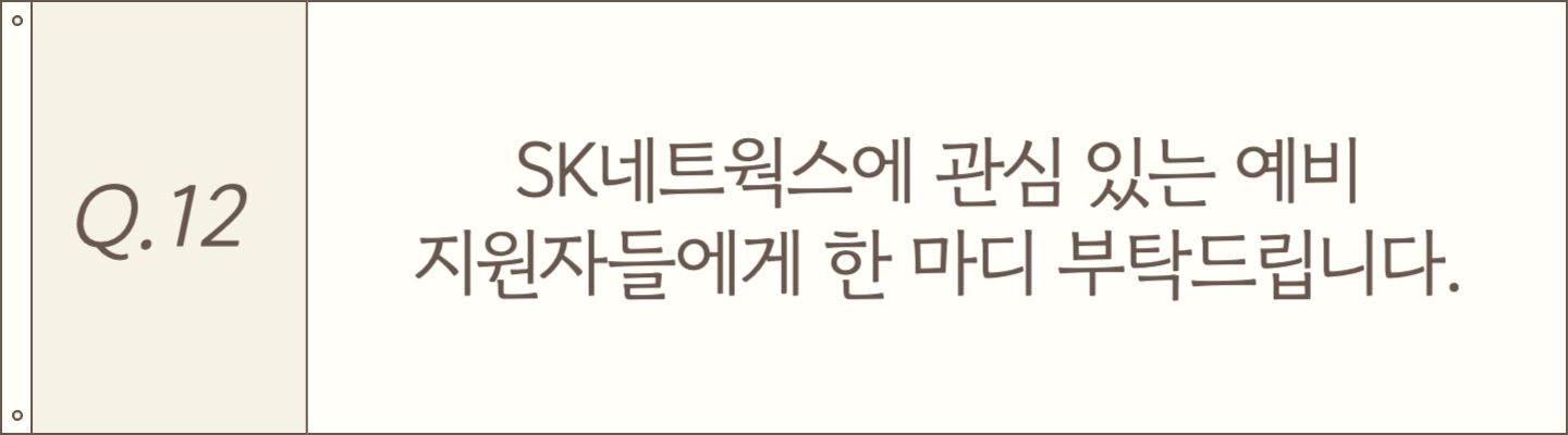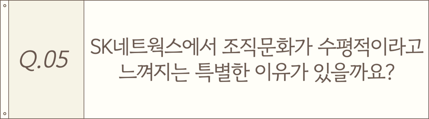 이번 인터뷰를 통해 SK네트웍스가 지향하는 기업문화가 단지 좋은 분위기를 넘어, 구성원이 더 잘 일하고 성장할 수 있도록 돕는 '진짜 문화'라는 점을 느낄 수 있었습니다.