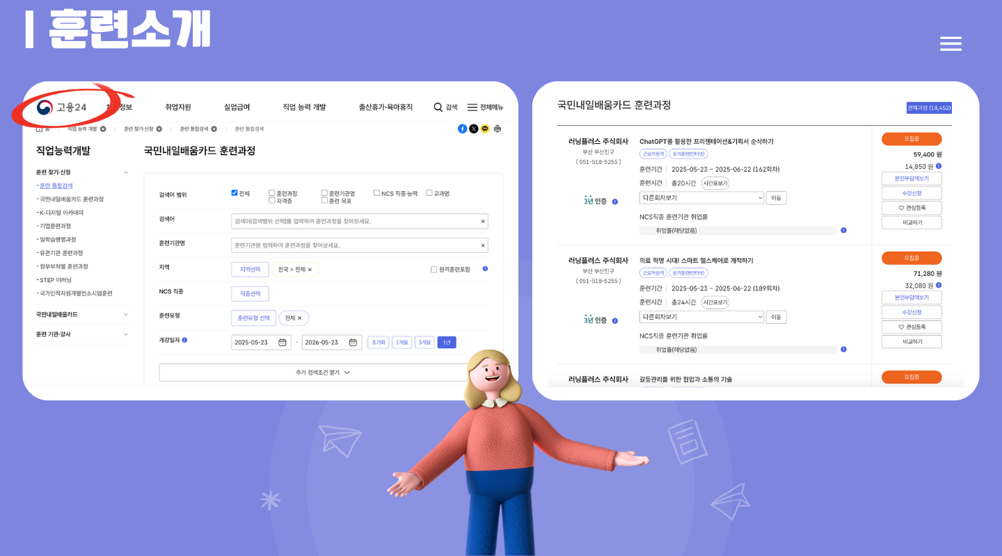 📌고용24>직업 능력 개발>훈련 찾기&신청>훈련 통합검색